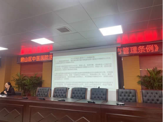 全民医保是一项重要的民生工程,为了使全院医务人员更好地掌握医保相关政策知识,提升我院医疗保险管理服务能力,规范执业行为,提升医疗质量,有效地保障参保人员在我院就诊的权益,用好老百姓的每一分钱,根据君山区中医医院党支部书记黄峰的要求,2022年4月22日下午,全体职工在本院住院部六楼会议室举办医保培训会。
